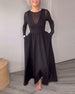SPECIFICATIONS Style: Basics Material: 95% Polyester, 5% Spandex Dress Type: Shift dress Dress Length: Maxi Neckline: Round Neck Pattern Type: Solid Color Sleeve Type: Flare Sleeve Sleeve Length: Long Sleeve Details: Patchwork,Lace Fit Type: Loose Season: Fall,Winter Occasion: Daily Package Includes: 1 x Dress SIZE TABLE Size Length Bus...