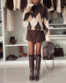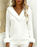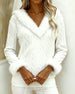Plush V-Neck Spliced Long-Sleeved Top