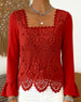 Bell-Sleeved Crochet Solid Color Top