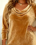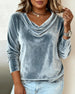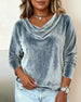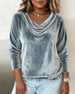 SPECIFICATIONS Top Type: Tops Style: Casual Material: Velvet Occasion: Vacation Neckline: Draped Collar Pattern Type: Solid Color Sleeve Type: Regular sleeve Sleeve Length: Long Sleeve Fit Type: Regular Season: Fall,Winter Package Includes: 1 x Top SIZE TABLE Size Bust Length UK CM INCH CM INCH 1XL 18 115 45.28 68 26.77 2...