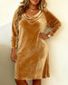 SPECIFICATIONS Style: Casual Material: Velvet Dress Type: Shift dress Neckline: Draped Collar Pattern Type: Solid Color Sleeve Type: Regular sleeve Sleeve Length: Long Sleeve Fit Type: Regular Season: Fall,Winter Occasion: Daily Package Includes: 1 x Dress SIZE TABLE Size Bust Length UK CM INCH CM INCH 1XL 18 115 45.28 100 39...