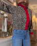 Ruffled Leopard Print Color-Blocked Blouse