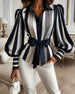 SPECIFICATIONS Top Type: Blouses Style: Casual Material: Cotton Blends Occasion: Daily Neckline: Lapel Pattern Type: Striped Sleeve Type: Puff Sleeve Sleeve Length: Long Sleeve Fit Type: Regular Season: Fall,Winter Details: Lace Up Package Includes: 1 x Blouse SIZE TABLE Size Bust Length CM INCH CM INCH S 97 38.19 65 25.59 M 1...