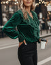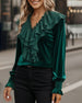 Ruffled V-Neck Long-Sleeved Velvet Top
