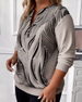 Plus-Size Draped Collar Long-Sleeve Top