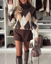 V-Neck Color-Block Leopard Print Sweater