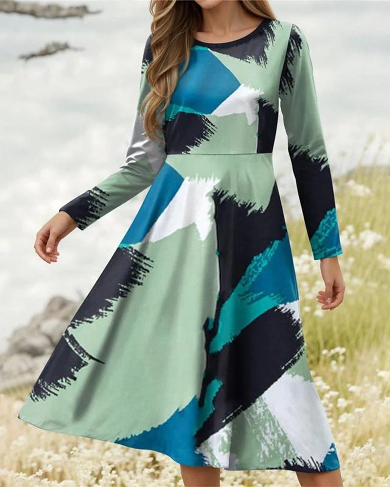 Geometric Print Long Sleeve V-Neck Top