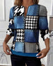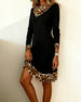 V-Neck Leopard Print Patchwork Long-Sleeve Top