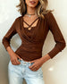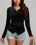 SPECIFICATIONS Top Type: Tops Style: Elegant Material: Velvet Occasion: Daily Neckline: V neck_V Pattern Type: Solid Color Sleeve Type: Regular sleeve Sleeve Length: Long Sleeve Fit Type: Regular Season: Fall,Winter Details: Shirred Package Includes: 1 x Top SIZE TABLE Size Bust Length CM INCH CM INCH S 97 38.19 65 25.59 M 101...