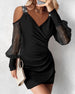 SPECIFICATIONS Style: Elegant,Party Material: Cotton Blends,Mesh Dress Type: Bodycon Dress Length: Knee Length Neckline: V neck_V Pattern Type: Solid Color Sleeve Type: Puff Sleeve Sleeve Length: Long Sleeve Details: Patchwork,Hot Drilling Fit Type: Regular Season: Spring,Fall,Winter Occasion: Daily Package Includes: 1 x Dress SIZE TABLE ...