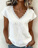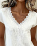 Lace V-Neck Solid Color Blouse