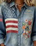 Turn-down Collar Print Embroidery Shirt
