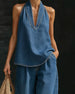 Fashion Halter Neck Denim Set