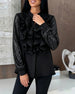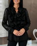 Ruffled V-Neck Long-Sleeved Velvet Top