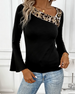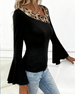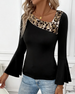 Leopard Print Paneled Flared Sleeve Top