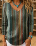 V-Neck Colorful Vertical Striped Print Top