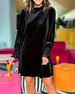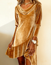 Slouchy Collar Ruffled Paneled Velvet Dress