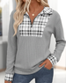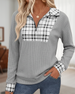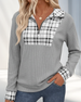 Plaid Patchwork Zip-Up Sweatshirt
