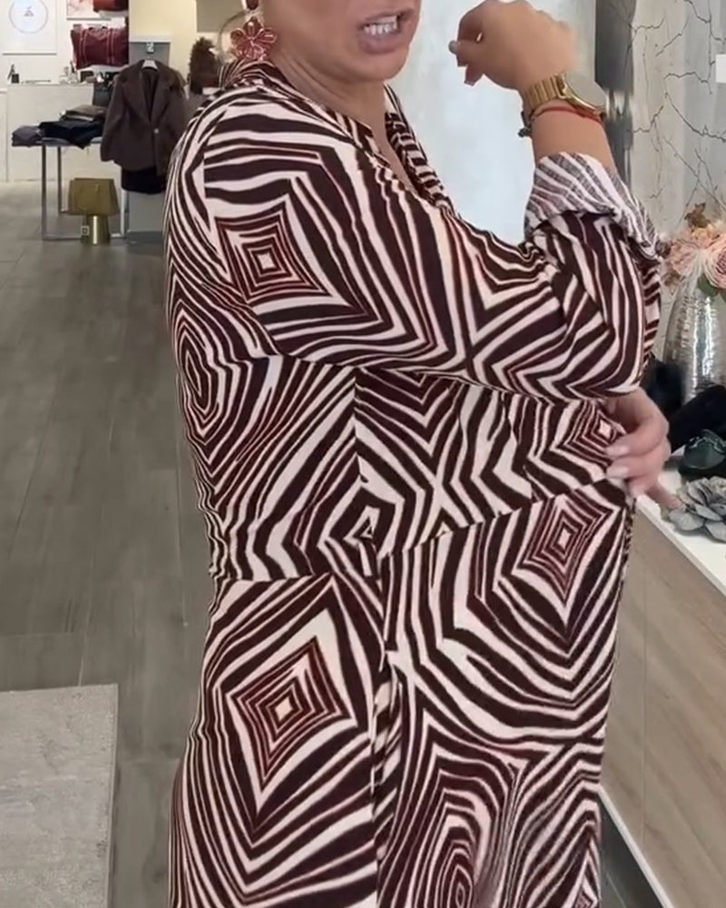 Vintage Geometric Print Shirt Dress