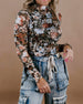 Colorful Floral Print Long-Sleeved Top