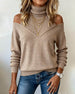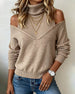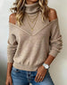 High-Neck Cold-Shoulder Temperamental Sweater