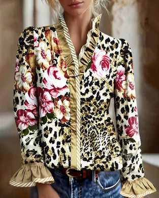 Stylish Floral Print Ruffle Blouse