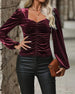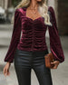 Stylish Puff-Sleeved Ruched Velvet Top