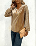 V-Neck Sequined Velvet Patchwork Top