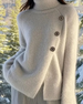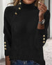 High-Neck Metallic-Button Solid-Color Sweater