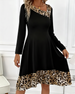 Slanted Collar Leopard Print Patchwork Dress