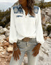 Contrast Color Flap V-Neck Long-Sleeved Top