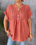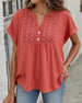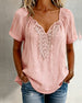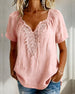 Lace Panel V-Neck Short Sleeve Blouse