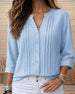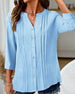 Vertical Pleated V-Neck 3/4 Sleeve Shirt