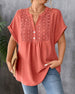 Peter Pan Collar Hollow Out Short Sleeve Blouse