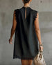 Button Ruffle Sleeve Cotton-Linen Dress