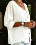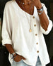 SPECIFICATIONS Top Type: Shirt Style: Casual Material: Cotton Blends Occasion: Daily Neckline: V neck_V Pattern Type: Solid Color Sleeve Type: Regular sleeve Sleeve Length: 3/4 Sleeve Fit Type: Regular Season: Spring,Summer Details: Buckle,Shirred Package Includes: 1 x Shirt SIZE TABLE Size Bust Length CM INCH CM INCH S 92 36.22 65 25...
