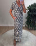 SPECIFICATIONS Style: Casual Material: Cotton Blends Dress Type: Shift dress Dress Length: Maxi Neckline: V neck_V Pattern Type: Geometric Print Sleeve Type: Regular sleeve Sleeve Length: Short Sleeve Fit Type: Regular Season: Spring,Summer Occasion: Daily Package Includes: 1 x Dress SIZE TABLE Size Bust Length CM INCH CM INCH S 97 38...