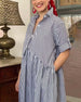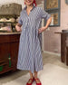 SPECIFICATIONS Style: Casual Material: Cotton Blends Dress Type: A-Line Dress Length: Midi Neckline: Lapel Pattern Type: Striped Sleeve Type: Regular sleeve Sleeve Length: Short Sleeve Details: Buttons Fit Type: Regular Season: Spring,Summer Occasion: Daily Package Includes: 1 x Dress SIZE TABLE Size Bust Length CM INCH CM INCH S...