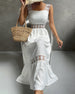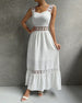 SPECIFICATIONS Style: Vacation Material: Cotton Blends Dress Type: A-Line Dress Length: Maxi Neckline: U Neck_U Pattern Type: Solid Color Sleeve Length: Sleeveless Details: Hollow Out,Lace Fit Type: Regular Season: Spring,Summer Occasion: Vacation Package Includes: 1 x Dress SIZE TABLE Size Bust Length CM INCH CM INCH S 97 38.19 130 5...