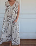 SPECIFICATIONS Style: Boho Material: Cotton Blends Dress Type: A-Line Dress Length: Midi Neckline: V neck_V Pattern Type: Print Sleeve Type: Regular sleeve Sleeve Length: 3/4 Sleeve Season: Spring,Summer Occasion: Daily Package Includes: 1 x Dress SIZE TABLE Size Bust Length CM INCH CM INCH S 97 37.4 120 47.24 M 101 39.37 121.5...