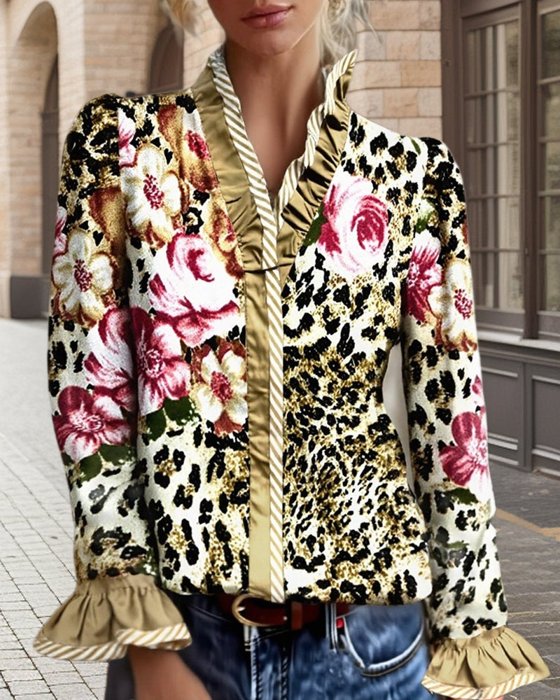 SPECIFICATIONS Top Type: Tops Style: Casual Material: Cotton Blends Occasion: Daily Neckline: V neck_V Pattern Type: Leopard Sleeve Type: Regular sleeve Sleeve Length: Long Sleeve Fit Type: Regular Season: Fall,Winter Details: Shirred Package Includes: 1 x Top SIZE TABLE Size Bust Length CM INCH CM INCH S 97 38.19 65 25.59 M 1...
