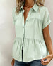 SPECIFICATIONS Top Type: Shirt Style: Casual Material: Cotton Blends Occasion: Daily Neckline: Lapel Pattern Type: Solid Color Sleeve Type: Regular sleeve Sleeve Length: Short Sleeve Fit Type: Regular Season: Spring,Summer Details: Buttons Package Includes: 1 x Shirt SIZE TABLE Size Bust Length CM INCH CM INCH S 97 38.19 65 25.5...