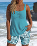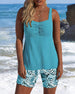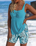 Tank Top Style Leaf Print Shorts Tankini