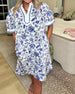 Blue and White Porcelain Print V-Neck Dress