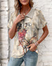 SPECIFICATIONS Top Type: Tops Style: Casual Material: Cotton Blends Occasion: Daily Neckline: V neck_V Pattern Type: Print Sleeve Type: Regular sleeve Sleeve Length: Short Sleeve Fit Type: Regular Season: Spring,Summer Package Includes: 1 x Top SIZE TABLE Size Bust Length CM INCH CM INCH S 97 38.19 65 25.59 M 101 39.76 66.5 26...