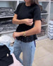 SPECIFICATIONS Top Type: Tops Style: Casual Material: Denim Occasion: Daily Neckline: Round Neck Pattern Type: Solid Color Sleeve Type: Regular sleeve Sleeve Length: Half Sleeve Fit Type: Regular Season: Spring,Summer Package Includes: 1 x Top SIZE TABLE Size Bust Length CM INCH CM INCH S 97 38.19 65 25.59 M 101 39.76 66.5 26....