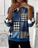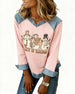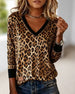 V-Neck Leopard Print Patchwork Long-Sleeve Top