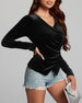 Elegant V-Neck Velvet Ruching Top