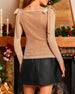 Shimmering Lantern Sleeve V-Neck Shirt