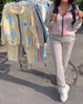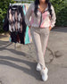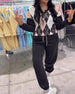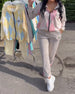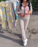 Plaid Zip-Up Top And Trousers Two-Piece Set
